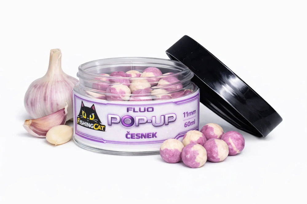 Fishing cat Česnek 11mm 60ml Pop-Up BoiliesSkladem 8 ks89 Kč/ ks74 Kč bez DPH